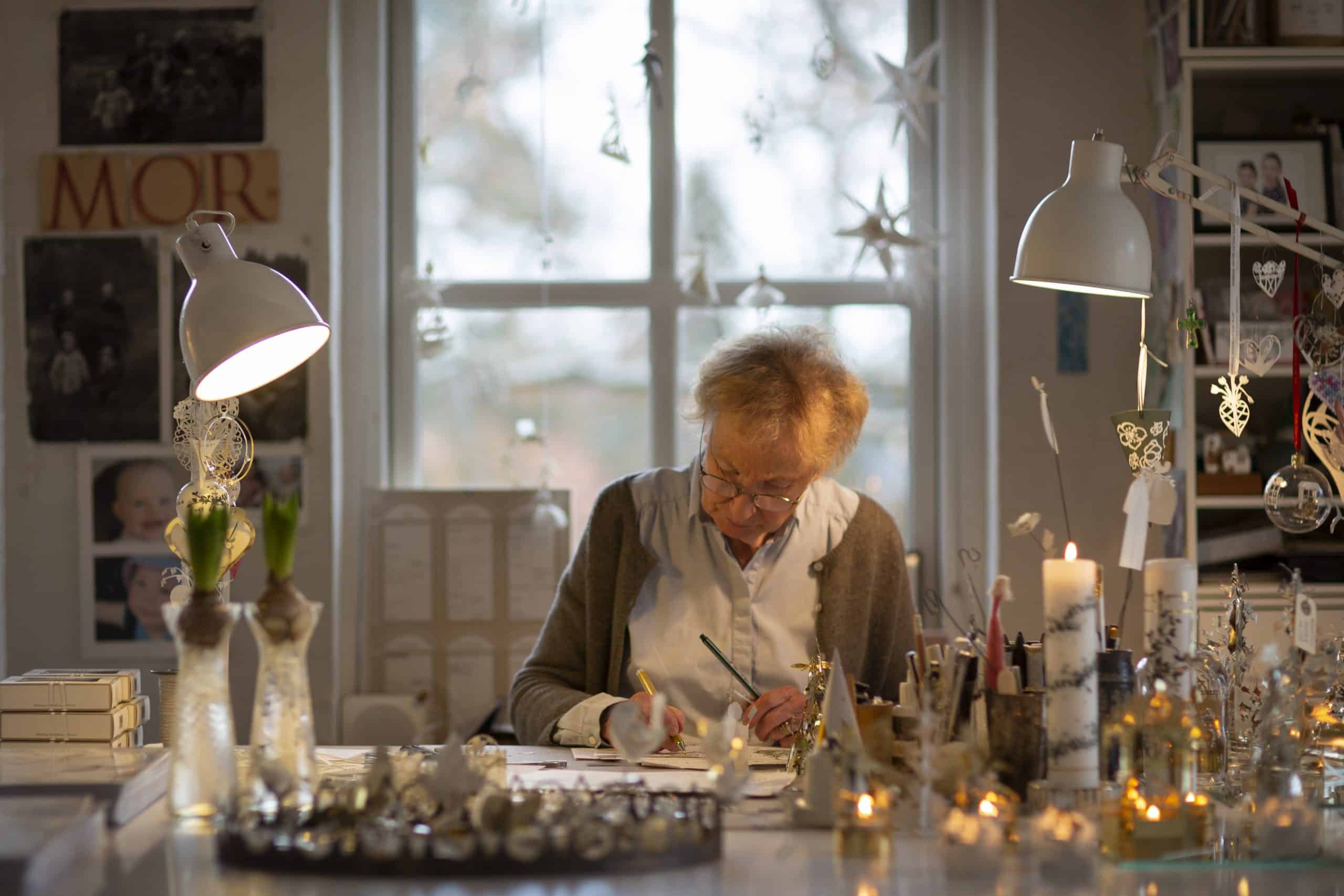 Jette began her journey in the 1960s, when she cut her first paper silhouettes – a technique that has since become her signature. Her motifs are inspired by the quiet beauty of nature: branches, birds, stars, winter landscapes and small moments that would otherwise easily go unnoticed.